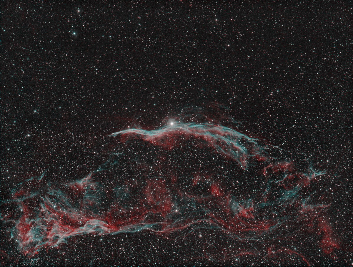 Western Veil Nebula (Witch’s Broom & Pickerings Triangle) in Ha-OIII Bicolour July 2017 Published November 20, 2017 at 9312 × 7040 in Reflections – 2017 ← Previous Next →