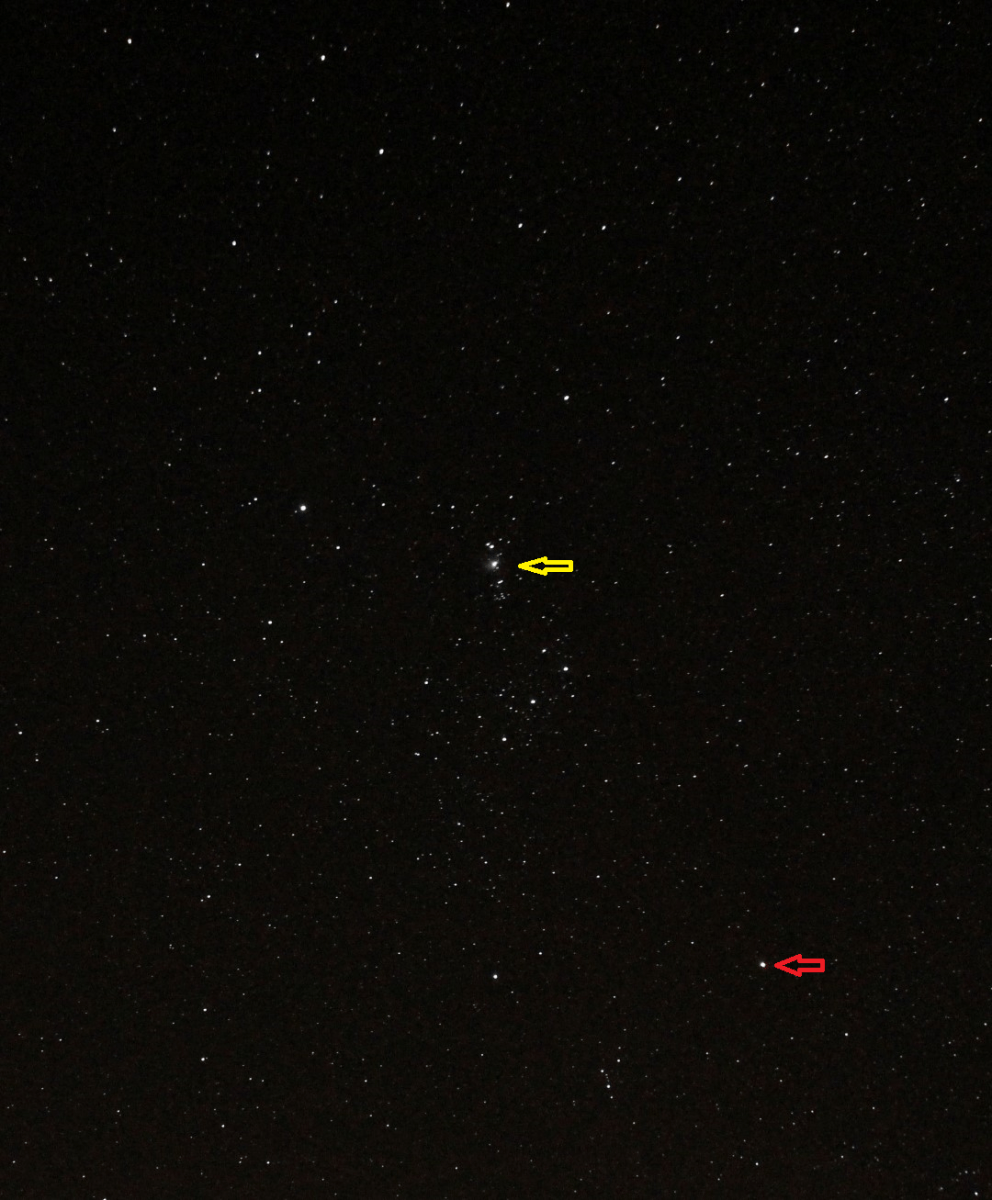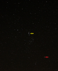IMG_0003crop anotate Published January 27, 2018 at 1080 × 1307 in Antipodean Astronomy Adventures ← Previous Next → Topsy Turvy – everything’s in the wrong place ! Red arrow = Betelgeuse, Yellow arrow = Orion Nebula
