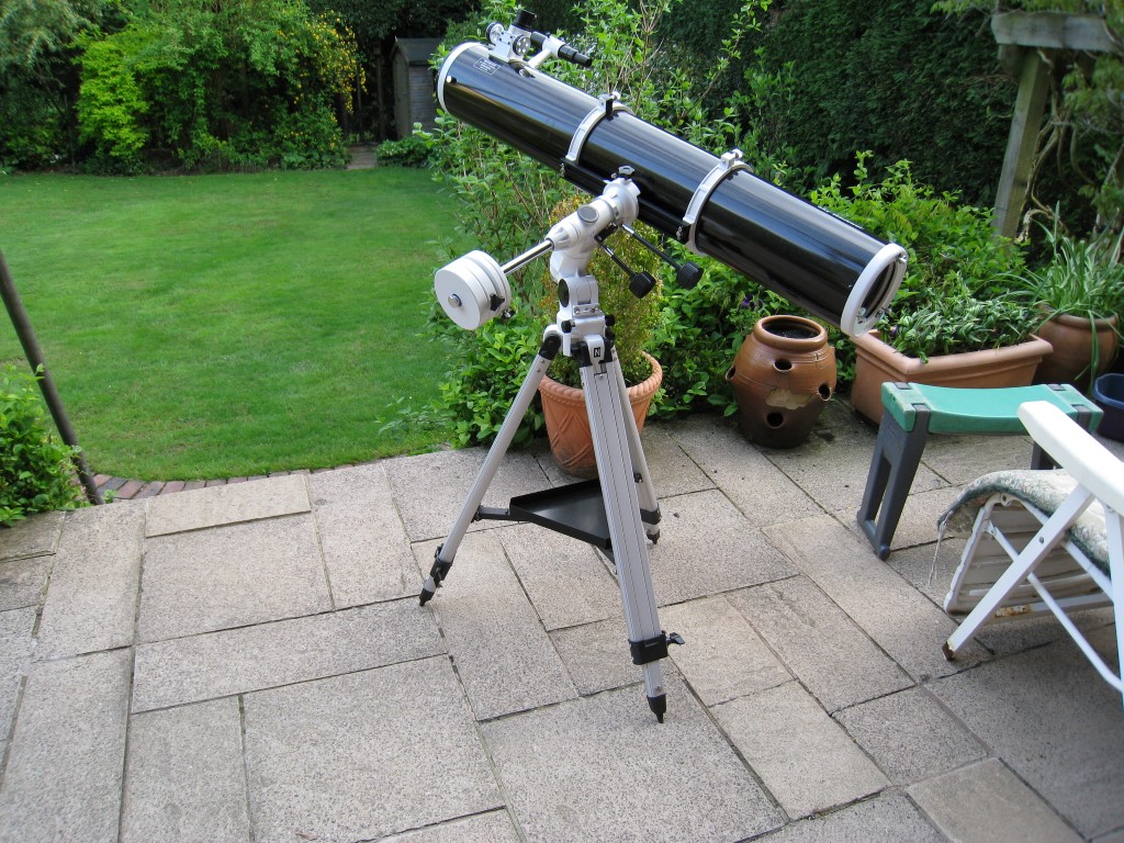 As described in the section About Me, after years of prevaricating about which scope to buy, I was finally stung into action in April 2013 by my first ever view of Saturn and a feeling by now that there were too many answers to the question, which scope? So best just get on with it. My philosophy for the first year was to experience astronomy and, if possible imaging, in order to: (i) see if I enjoyed it (ii) learn the basics with basic equipment and (ii) learn from my mistakes for a small financial outlay before spending the big bucks, if indeed that was to be my next move (as it was – see Part-2 later). In the end I went for a Skywatcher 150PL with an EQ3-2 mount, which all things considered turned out well and has certainly whetted my appetite for bigger and better stuff (the retailers will be pleased to know).
