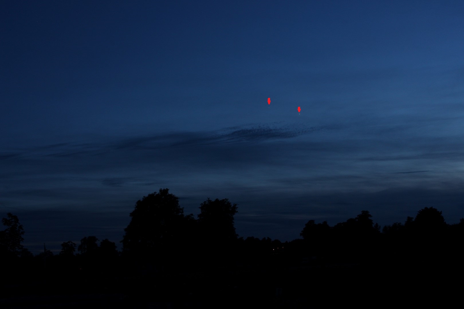 18th June 2015: Jupiter left, Venus right - trees on the horizon provide a reference scale as the planets move towards each other during the month in subsequent photographs