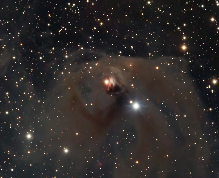| JULY | WIZARD NEBULA, NGC 7380 (2) Formed only a few million years ago, the gases of this young emission nebula glow due to intense radiation from hot, massive stars within. Interwoven within this glowing gas are dark, dense regions of dust that sculpt the nebula’s dramatic and somewhat mystical appearance, in this case a wizard – which marks my first image from Somerset. | |