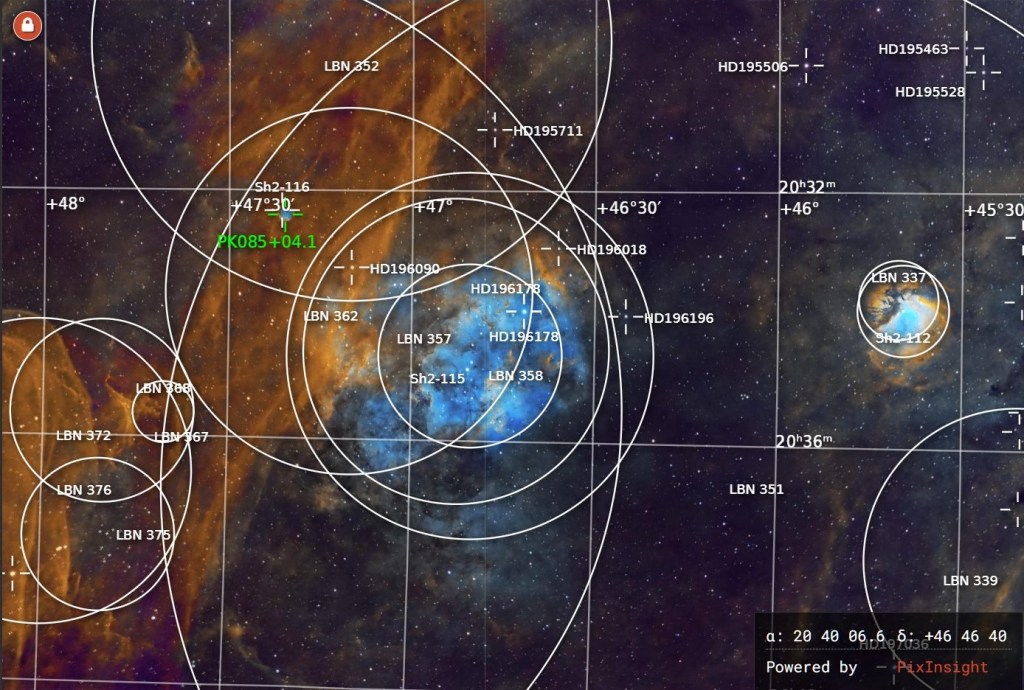 | Image Location & Orientation | Centre: RA 22:33:27.876 DEC +38:43:49.285 Right = North Top = East |