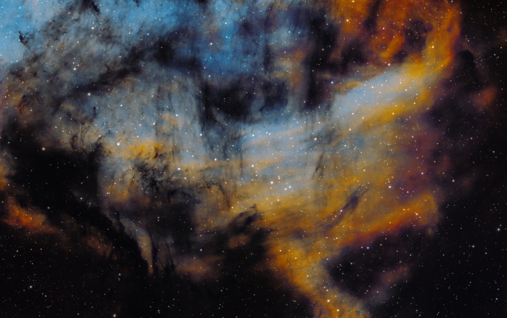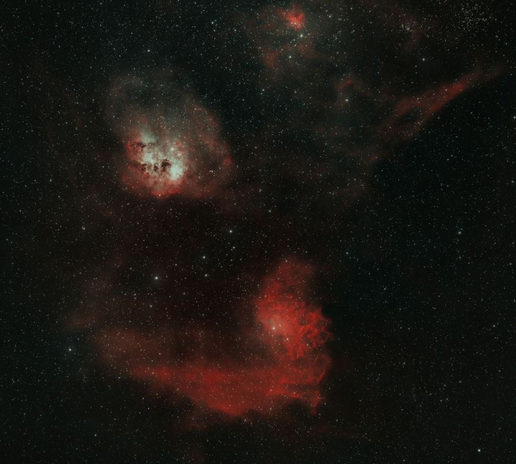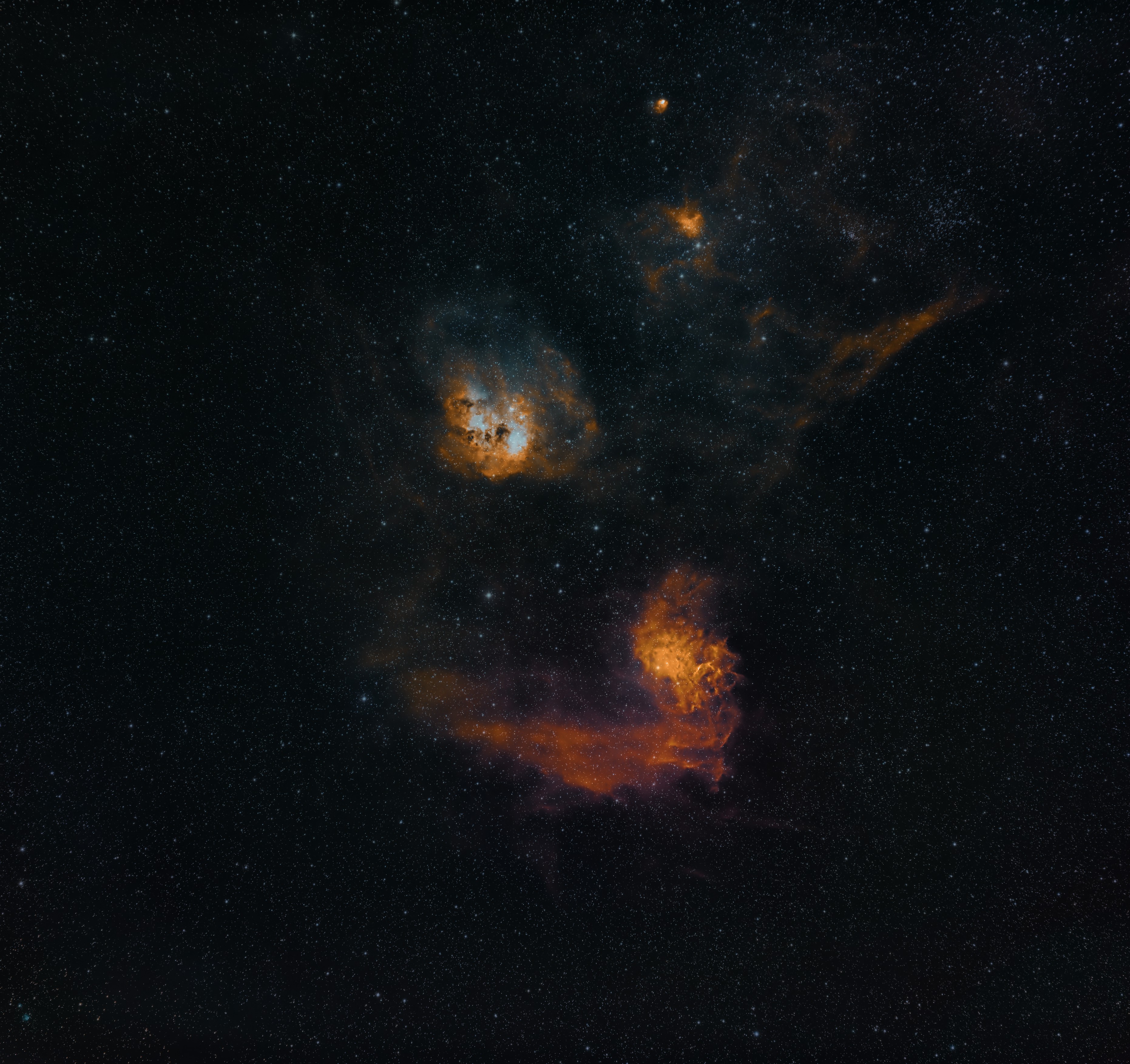 M42 and other nearby diffuse & reflection nebula (M43 & NGC1975 AKA the Running Man Nebula) is one of the most famous star-forming regions, which being the brightest nebula in the northern hemisphere and just over 1,300 light years distance from Earth, can itself also been seen with the naked eye on a clear night. To my surprise, I hadn’t imaged this beguiling object for 6-years, during which much had changed: a new mount, camera & filters + I had learned a few more processing tricks.