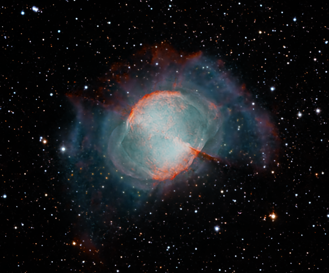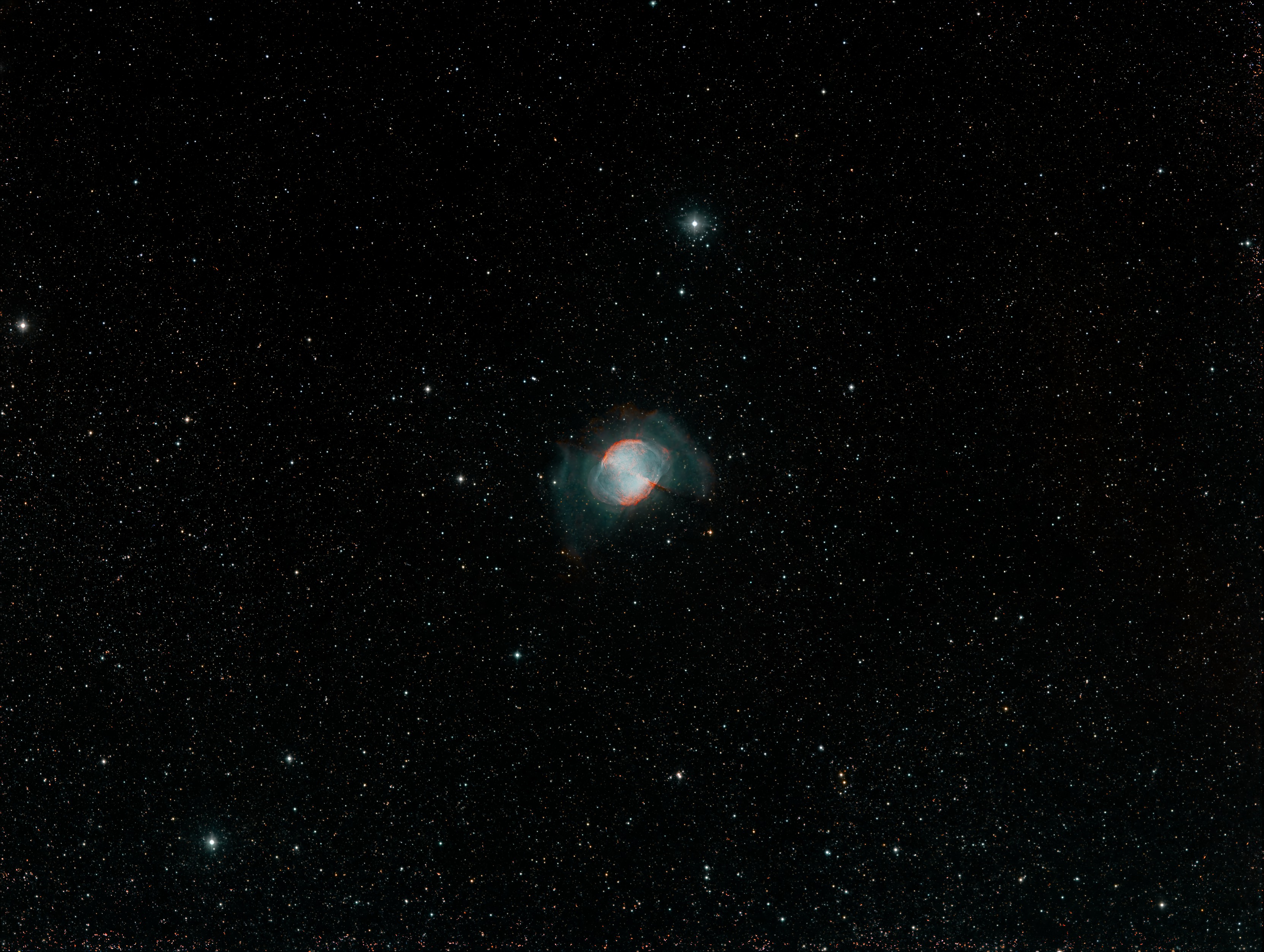 | Exposures | L x25, R x14, G x14, B x10 @ 180 sec = 3hr 9min L x16, R x5, G x8, B x8, @ 60 sec = 20 min L x24, R x12, G x 12, B x12 @ 15 sec = 15 min Total lntegration Time: 3hr 44 min |