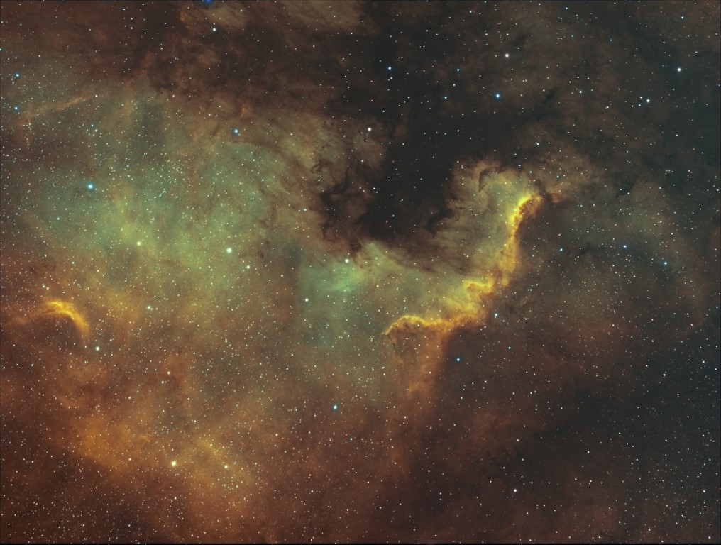 ExposuresHa 36 x 300 sec (3hr), OIII 30 x 300 sec (2hr 30m), SII 32 x 300 sec (2hr 40m) Total Integration Time: 8hr 10 min