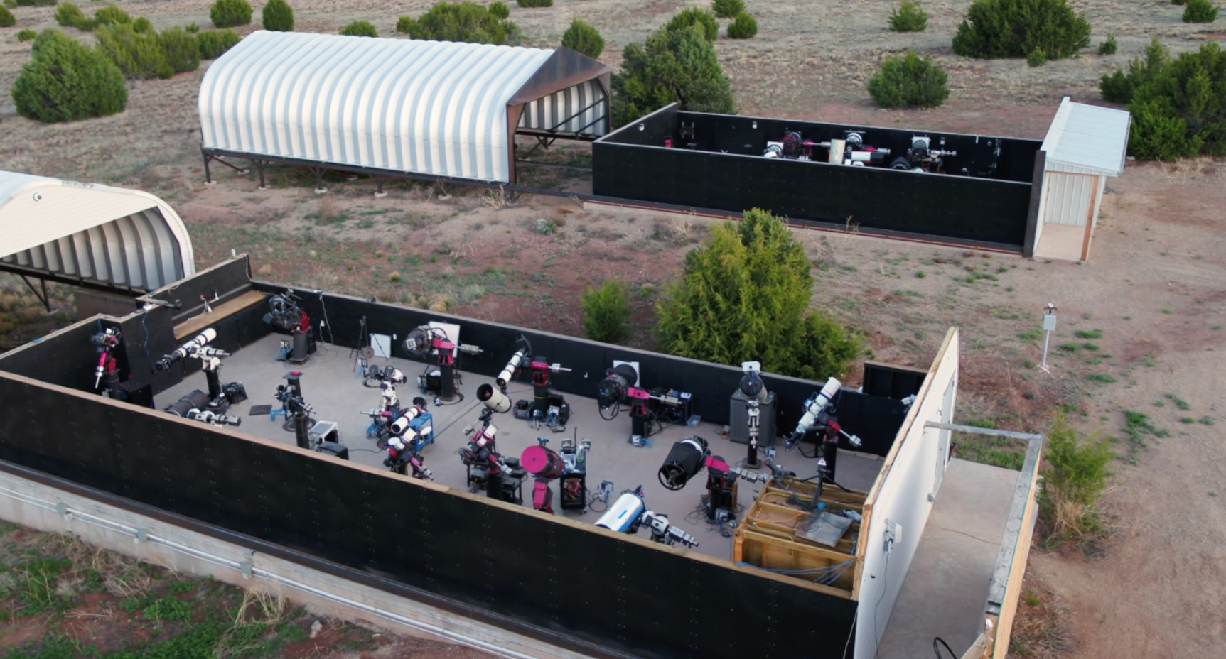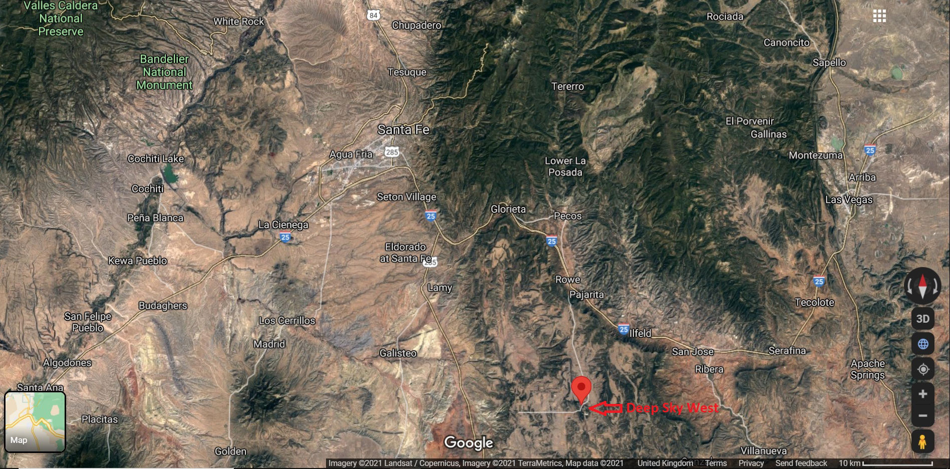 Deep Sky West is located about 35-miles south east of Santa Fe, at an elevation of 7,400ft on the Glorietta Mesa (see above map). Established by Lloyd Smith and Bruce Wright in 2015, there are now two large bespoke roll-off sheds (Alpha & Beta – see picture below) housing up to nearly forty rigs which are used by astrophotographers from across the world – you could call it a photon factory. DSW has since established a premier reputation as an observatory producing high quality data. Building on this success and the burgeoning demand for remote imaging, DSW are now expanding their service into Chile.