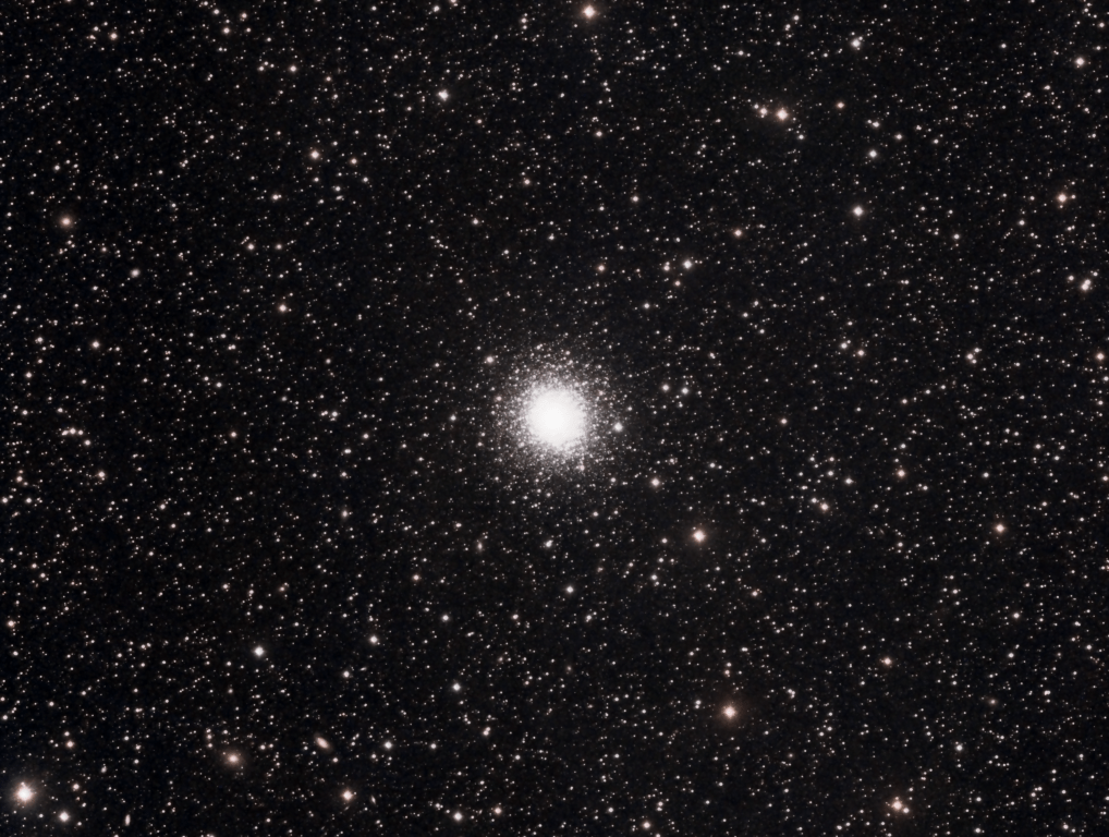 The DSW equipment combination produces a field-of-view nearly 50% less than my equipment at home but with a similar resolution, thus improving the magnification and image details of smaller and/or complex features such as globular clusters. Notwithstanding, I was pleased with my previous image of M13 (above) taken from Fairvale Observatory in 2018, which after cropping compares well with the new DSW version (see main image at the top of the page). This is my first image of M92 (below), which though OK probably needs more attention, as I’m not convinced the combination of the 600 secs + 300 secs + 60 secs data has worked to its full potential.