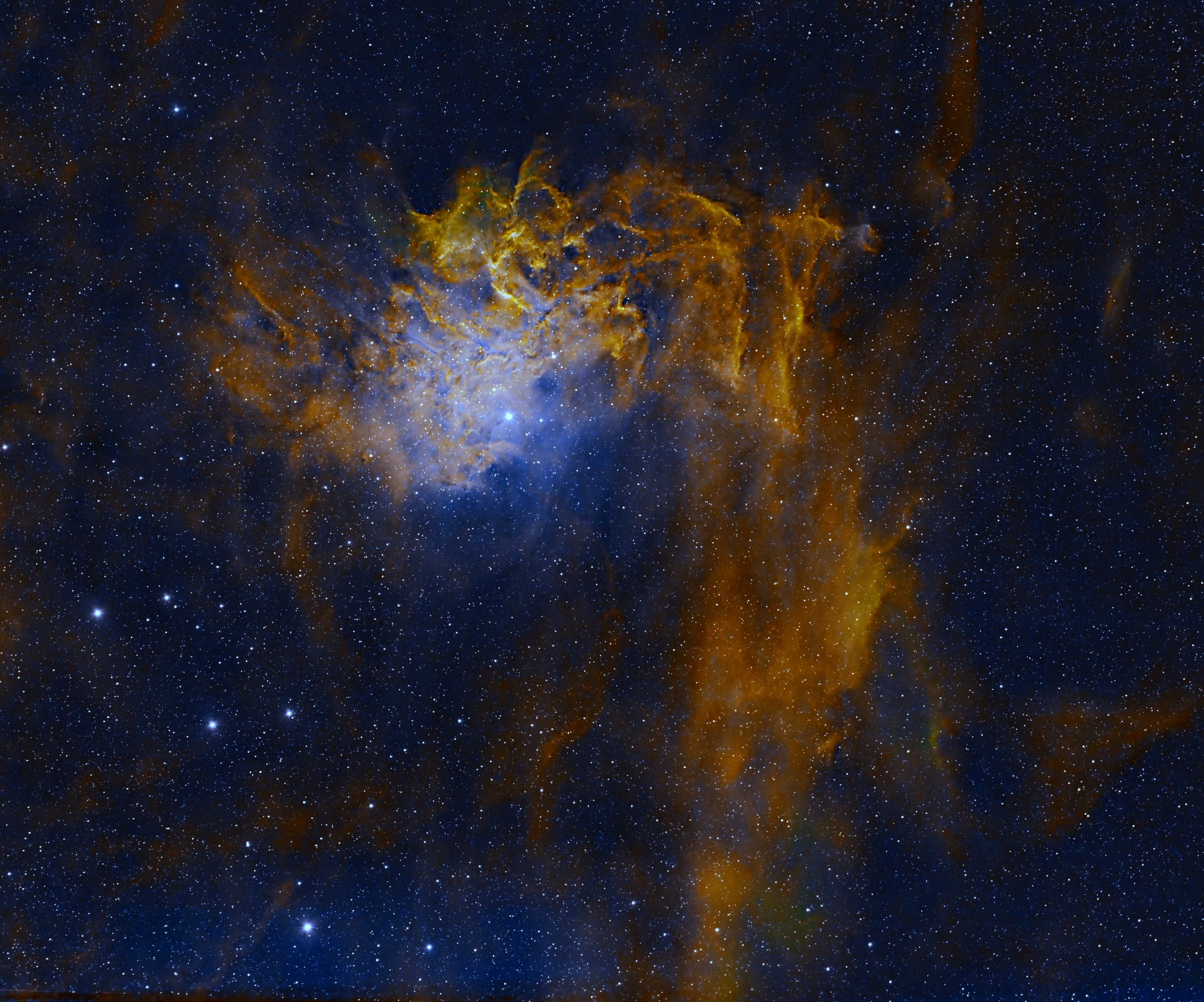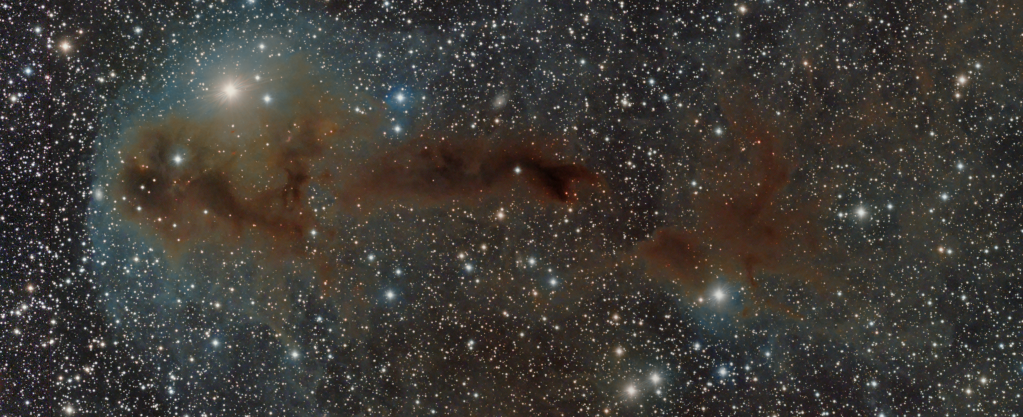 | JULY | WIZARD NEBULA, NGC 7380 (2) Formed only a few million years ago, the gases of this young emission nebula glow due to intense radiation from hot, massive stars within. Interwoven within this glowing gas are dark, dense regions of dust that sculpt the nebula’s dramatic and somewhat mystical appearance, in this case a wizard – which marks my first image from Somerset. | |